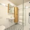 een inkomhal met een gastentoilet, een leefruimte met open keuken die voorzien is van alle hedendaagse comfort, 2 slaapkamers waarvan u toegang heeft tot het zonovergoten terras, een badkamer met douche, wastafel, badkamermeubel en toilet, wasplaats en een * garage (optioneel bij te huren 60 EUR/mnd). De toiletten en de wasmachine zijn aangesloten op regenwater.