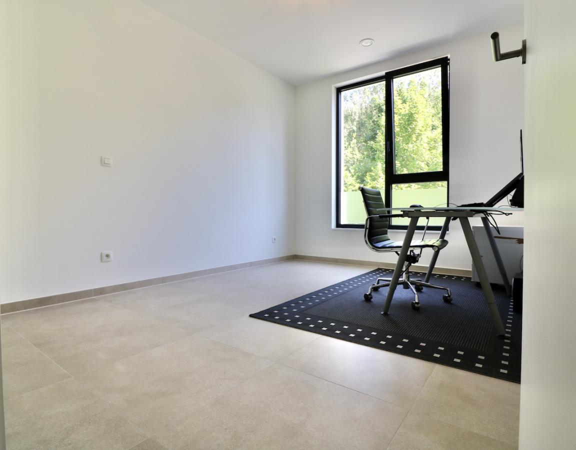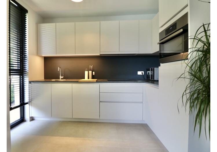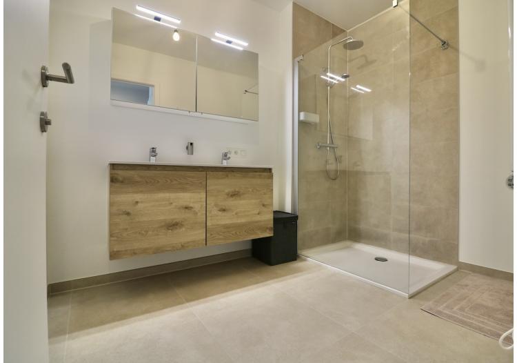 De indeling is als volgt: een inkomhal met vestiaire en met toegang tot de open, lichtrijke leefruimte en open keuken met een prachtig uitzicht op de groene omgeving, een badkamer met een grote inloopdouche en een badkamermeubel met dubbele lavabo, 2 grote slaapkamers, een gastentoilet, een berging met aansluitingen voor wasmachine en droogkast en een zonnig, overdekt terras waar u volop kunt genieten van de rust en de natuur.