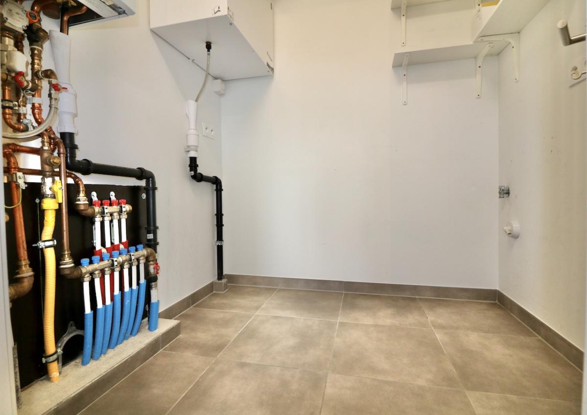 | Bevloering | Volkeramische tegels, parket in de leefruimte, laminaat in de slaapkamers en inkomhal |