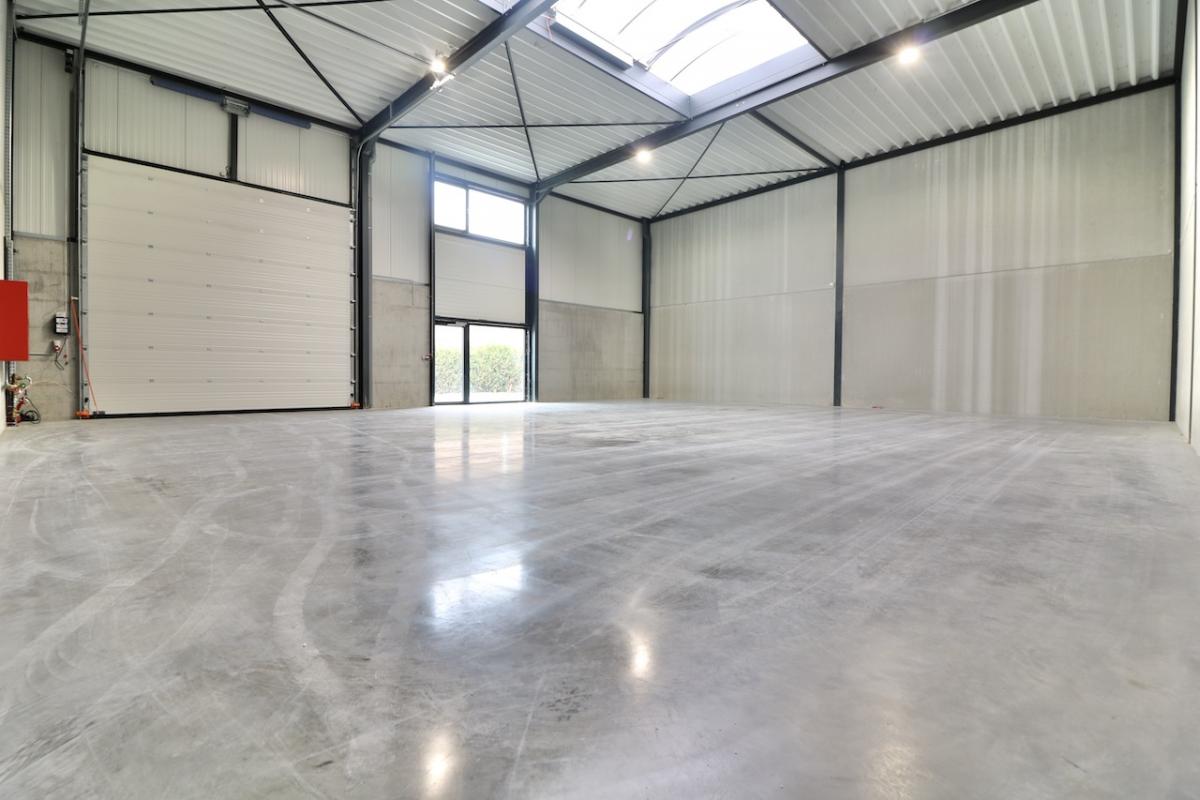 Het is voorzien van een polybetonvloer, een 15 cm gewapende betonvloer. Het pand is voorzien van moderne ledverlichting, 220V mono en 40 ampere 3-fasige elektriciteitsaansluitingen (drijfkracht), met een mogelijkheid naar 63 amper.