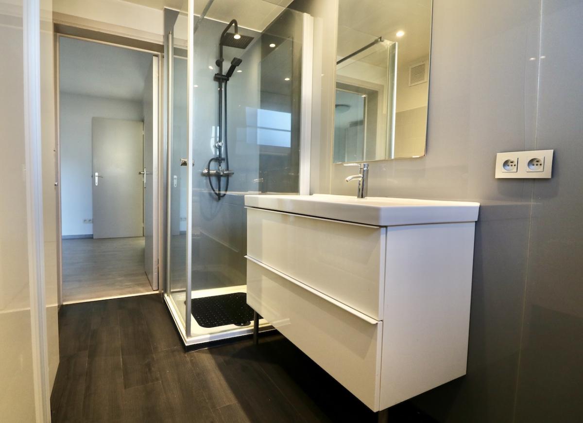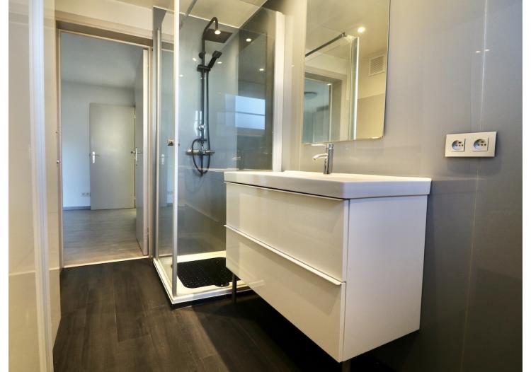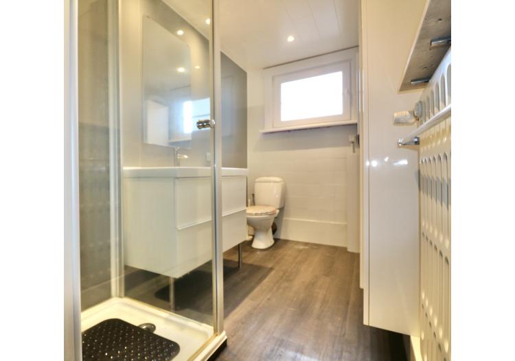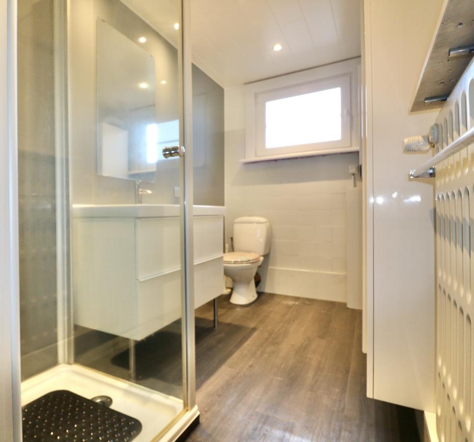 | Badkamer 1 | Badkamermeubel met enkele lavabo, douche en toilet. | |