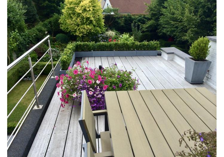 Dit herenhuis geniet van een optimale oriëntatie met drie zonnige terrassen en een tuin. De overstekken bij de leefruimte en masterbedroom zorgen voor natuurlijke zonwering.