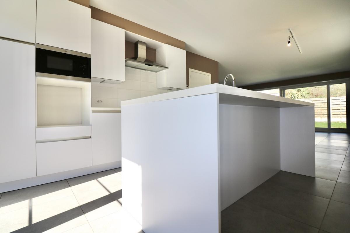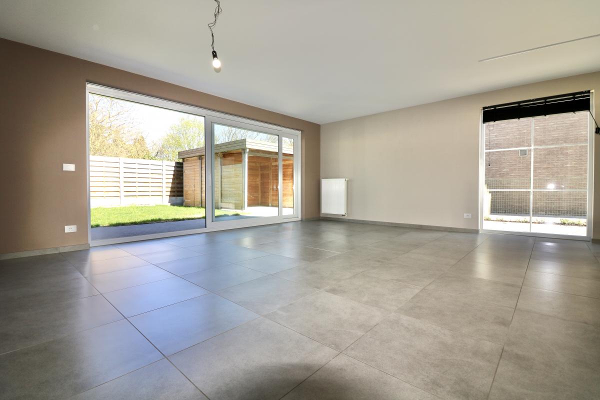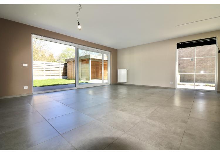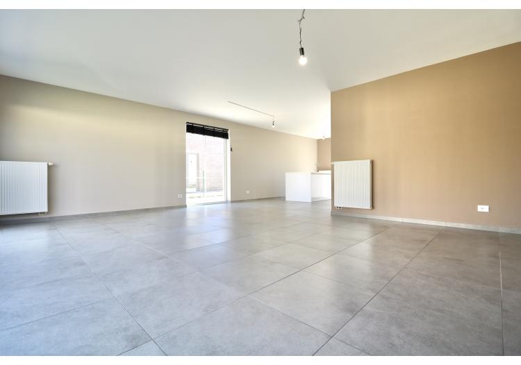De indeling is als volgt: een ruime inkom met een gastentoilet, een lichtrijke woonkamer met open, volledig uitgeruste keuken en een wasplaats/berging.