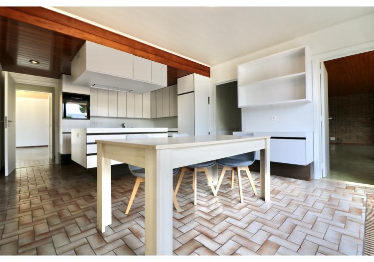 De keuken is compleet uitgerust om er je beste kookkunsten naar boven te halen. Het kookeiland met de aanpalende eetplaats maken het plaatje af. De praktische bijkeuken/ berging en wasplaats zijn gesitueerd naast de keuken.