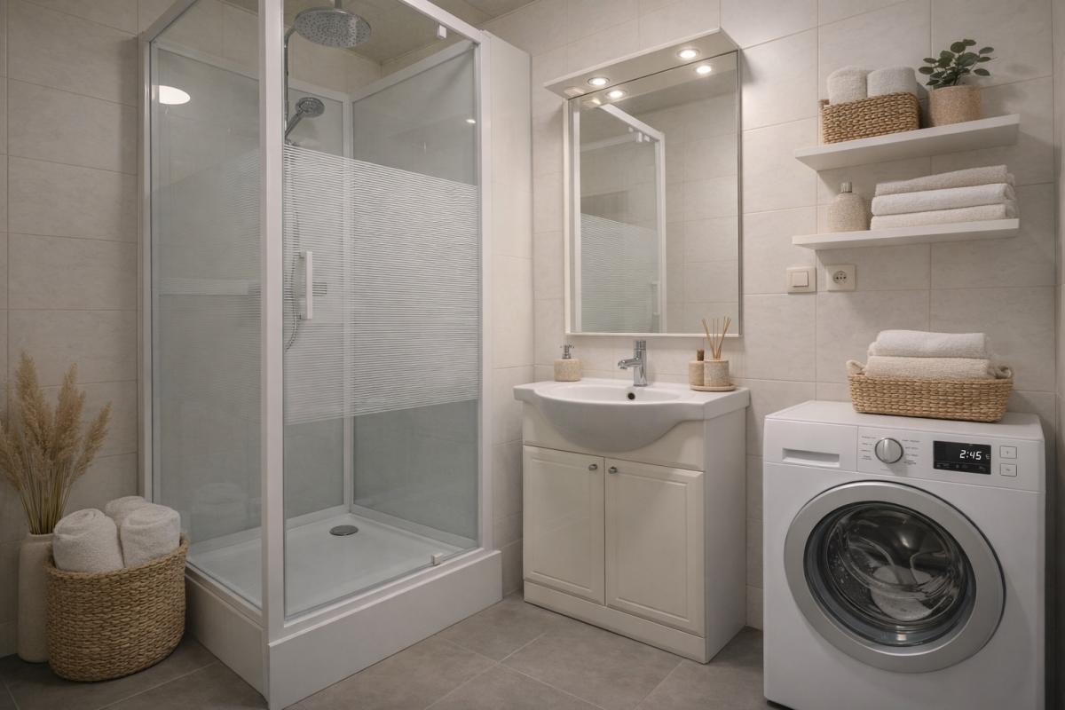 Beide slaapkamers bieden toegang tot het westelijk terras, wat extra licht en een gevoel van openheid creëert. De badkamer is mooi afgewerkt met douche, lavabomeubel en plaats voor de wasmachine. In de kelderverdieping beschik je tevens over een ruime, private kelder.