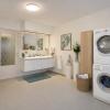 De handelsruimte is professioneel ingericht met balie, centraal geplaatste werkposten en drie spoelbakken achteraan. De open indeling bevordert klantcontact en creëert een aangename, professionele uitstraling. Aansluitend vindt u een gastentoilet en een ruime badkamer met dubbele lavabo, douche en praktische was- en bergruimte.