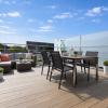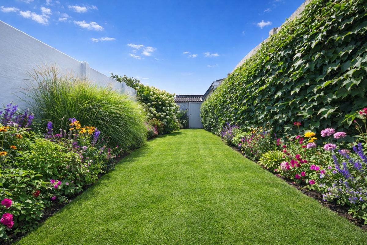 Het zuidgericht terras met aangelegde tuin vormt een echte meerwaarde. Achteraan bevindt zich een aparte buitenberging, bereikbaar via een handige uitweg — ideaal voor stockage, leveringen of fietsen.