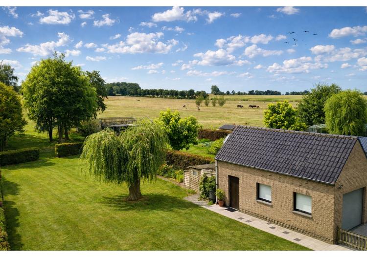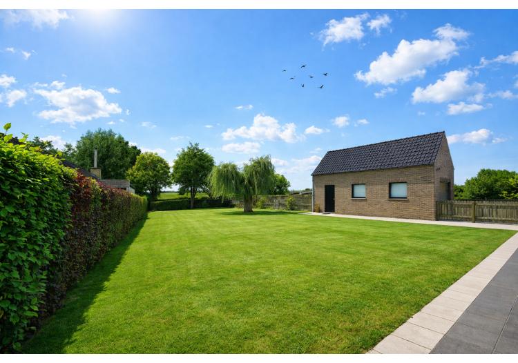 Buiten treft u een uitgestrekte tuin van maar liefst 1.562 m², die achteraan paalt aan diepe weiden en een blijvend open en landelijk uitzicht garandeert. Deze uitzonderlijke ligging zorgt voor rust, privacy en een sterke verbondenheid met de natuur. Ook aan de voorzijde blijft het uitzicht gevrijwaard: aan de overkant van de straat zal een aantrekkelijke waterpartij worden aangelegd, die niet alleen het zicht verfraait maar ook een natuurlijke biotoop creëert voor watervogels, wat een bijkomende charme en meerwaarde betekent.