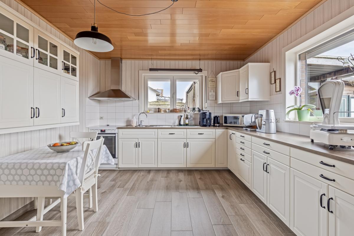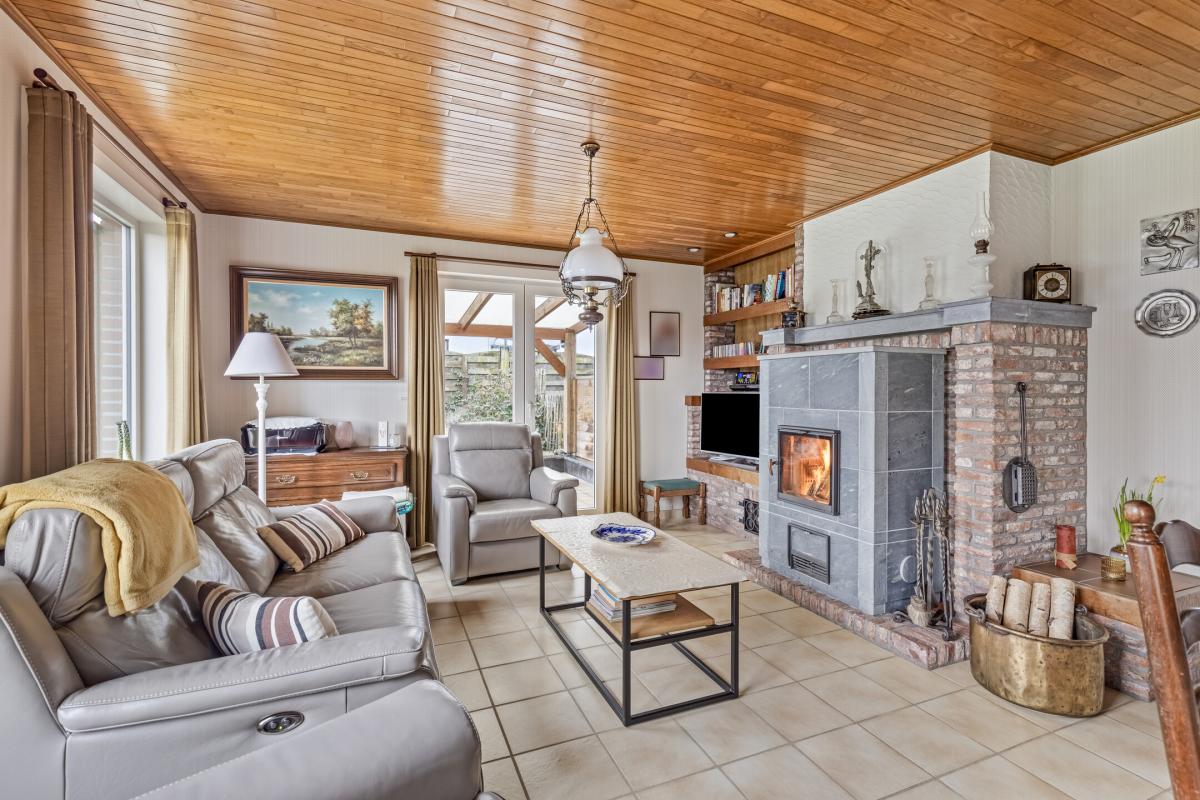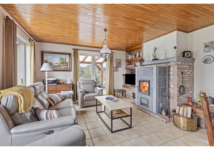 Bij het binnenkomen wordt u verwelkomd in een aangename en lichtrijke leefruimte, waar de speksteenhaard zorgt voor extra warmte en gezelligheid tijdens de wintermaanden. De keuken werd vernieuwd in 2017 en biedt een hedendaagse en praktische inrichting.