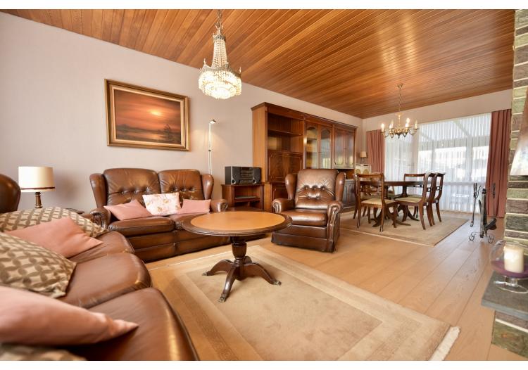 De lichtrijke leefruimte, veranda en het ruime terras bieden dagelijks wooncomfort met zicht op de grote tuin.