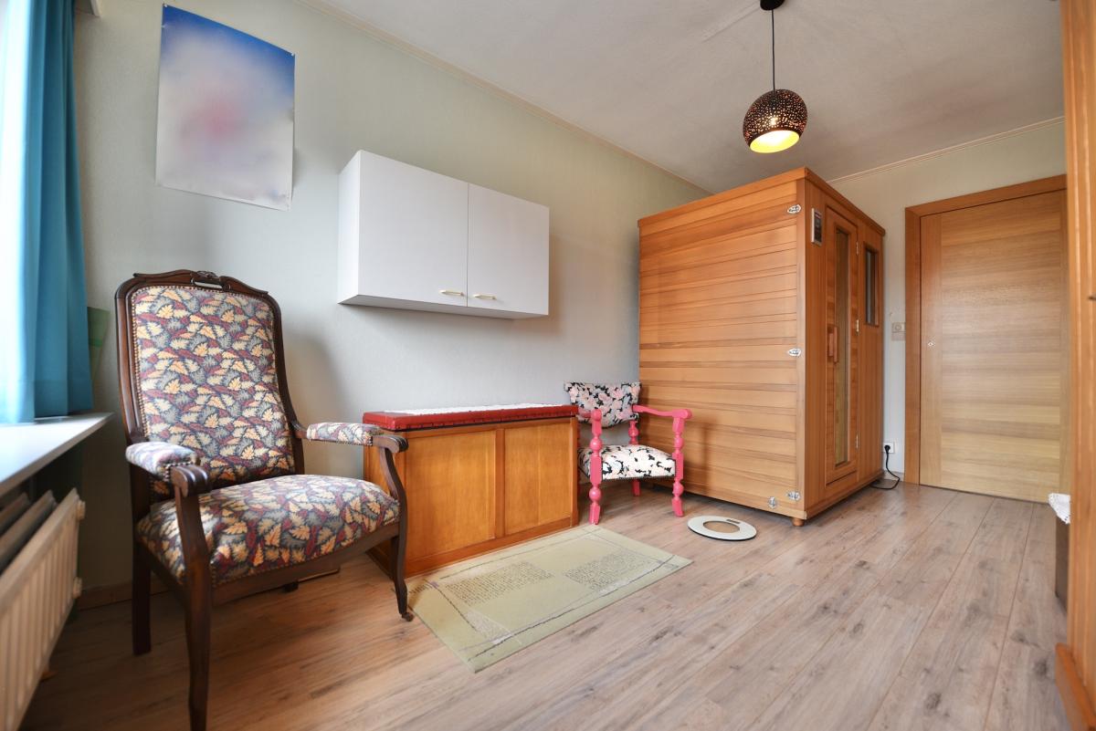 Het gelijkvloers van deze woning omvat een ruime lichtrijke woonkamer met eetplaats en aansluitend een veranda waar u heel het jaar door geniet van de rust en het contact met de tuin. De geïnstalleerde keuken geeft uit op het prachtig terras, een heerlijke plek om te vertoeven met familie en vrienden. De tuin beschikt over een waterpartij, een serre en een tuinhuis en is aanpalend aan het natuurgebied "Galgenhof", ideaal voor natuurliefhebbers!