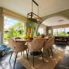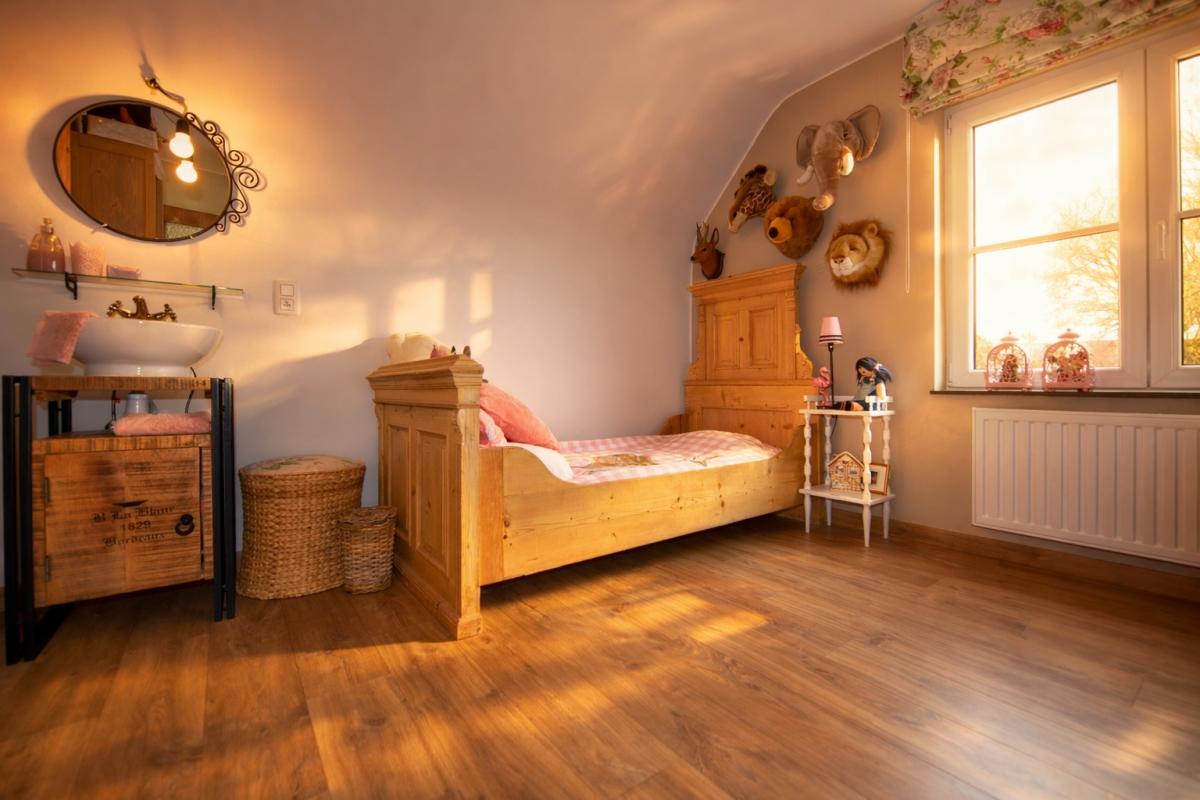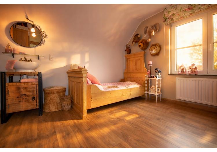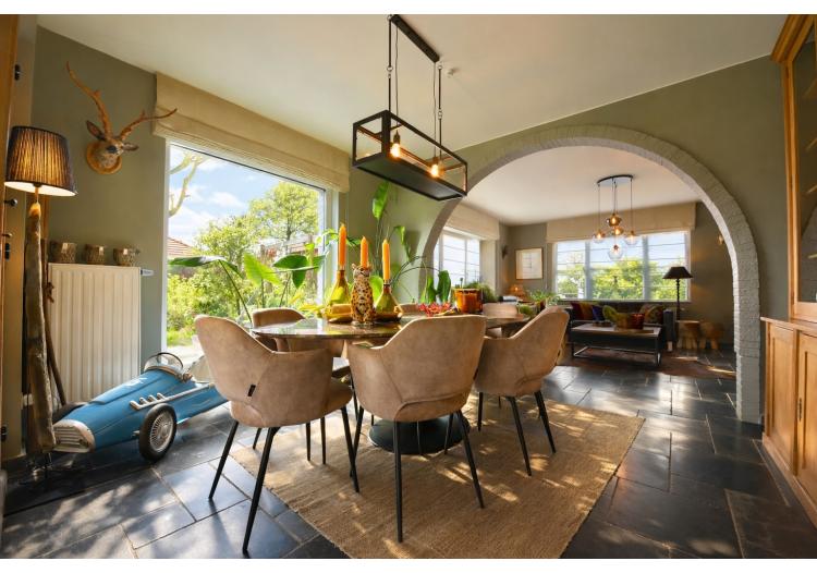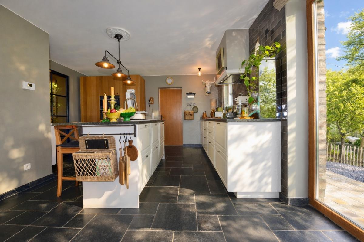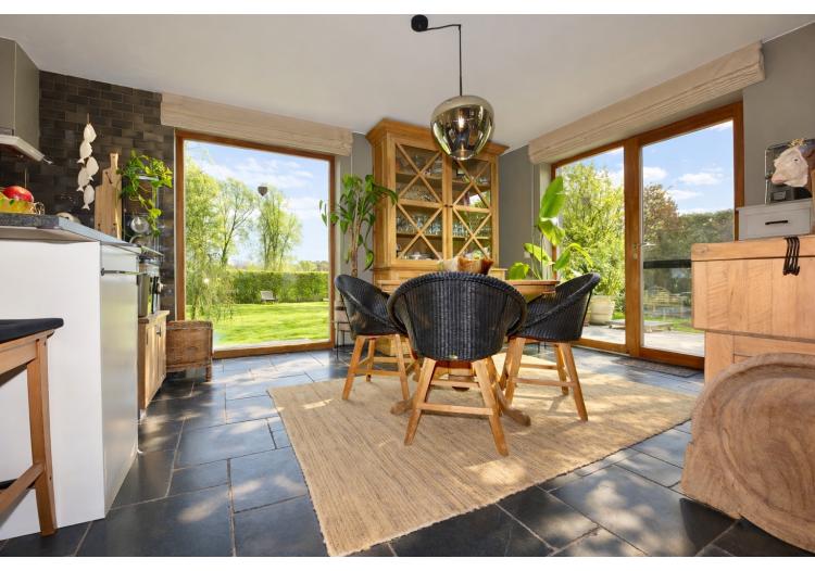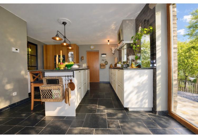 Bij het binnenkomen wordt u meteen gecharmeerd door de lichtrijke en bijzonder praktische indeling van de leefruimtes. De prachtige uitbouw zorgt voor een overvloed aan natuurlijk daglicht en creëert een harmonieuze verbinding met de tuin. Zowel de keuken, het salon als de leefruimte genieten van dit ruimtelijke en open gevoel. De stijlvolle landelijke keuken vormt het warme hart van de woning en beschikt over een gezellige eethoek en talrijke opbergmogelijkheden. Aansluitend bevindt zich een ruime en functionele wasplaats, wat het dagelijkse comfort aanzienlijk verhoogt.