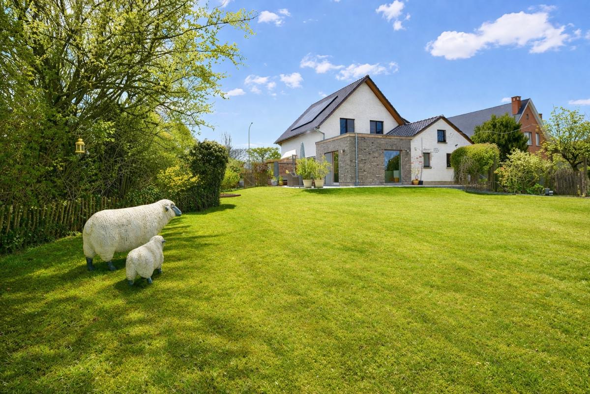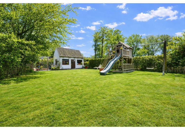 Deze instapklare woning beschikt bovendien over een inpandige garage en een uitzonderlijk ruime, volwassen tuin met een gunstige zuidoostelijke oriëntatie. Het aangename terras nodigt uit om volop te genieten van zonnige dagen en lange, sfeervolle avonden. Aansluitend aan het terras werd een prachtige vijver aangelegd met een rustgevend kabbelend watervalletje, wat bijdraagt aan de serene en landelijke sfeer. In de tuin is er bovendien ruimte voorzien voor het houden van kippen, wat het landelijke karakter extra benadrukt. Daarnaast beschikt u over een serre voor de liefhebber van tuinieren en een grote, passende stenen tuinberging die zorgt voor bijkomende praktische opbergruimte.