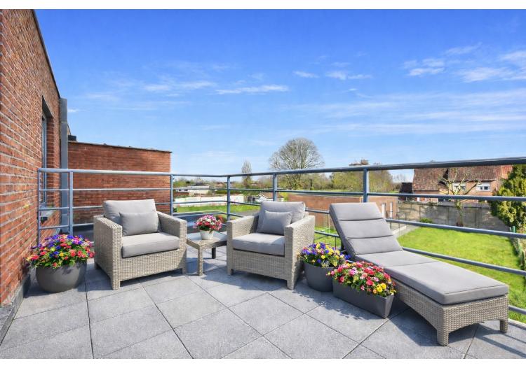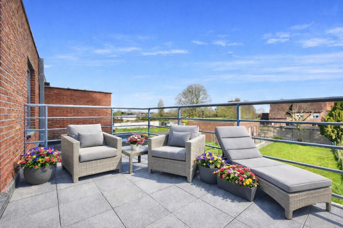 De moderne architectuur ademt licht, ruimte en openheid. Grote raampartijen creëren een sterke visuele connectie met het aangename terras en de zonnige, privatief ingesloten tuin. Het ruime terras vormt het perfecte decor voor lange zomeravonden met vrienden en familie rond de barbecue. Bovendien beschikt de eerste verdieping over een bijkomend, privaat terras – een zeldzame troef die deze woning een uniek karakter geeft.