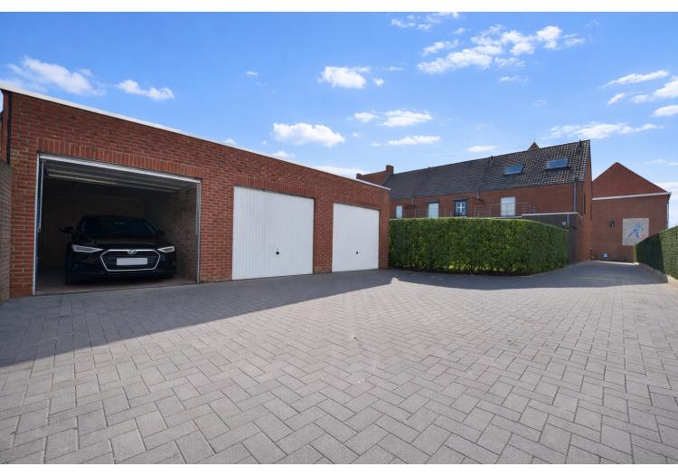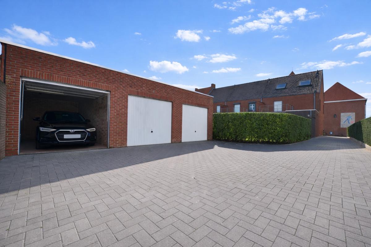 Ook praktisch scoort deze eigendom bijzonder sterk: een afzonderlijke garage biedt extra opbergruimte en veiligheid, en voor de woning zijn er twee private staanplaatsen voorzien.