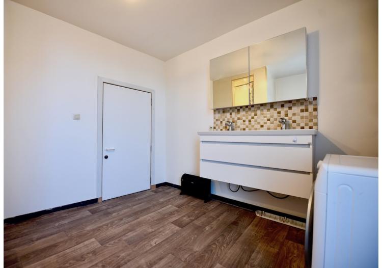 Via een aparte ingang kan het appartement betreden worden. Via de inkomhal gaan we naar de eerste verdieping waar we de open keuken met leefruimte terugvinden. Verder op dezelfde verdieping is er nog een badkamer met douche, lavabo en toilet en een eerste slaapkamer vinden. De tweede verdieping bestaat uit de tweede en derde ruime slaapkamers en een open bergruimte.