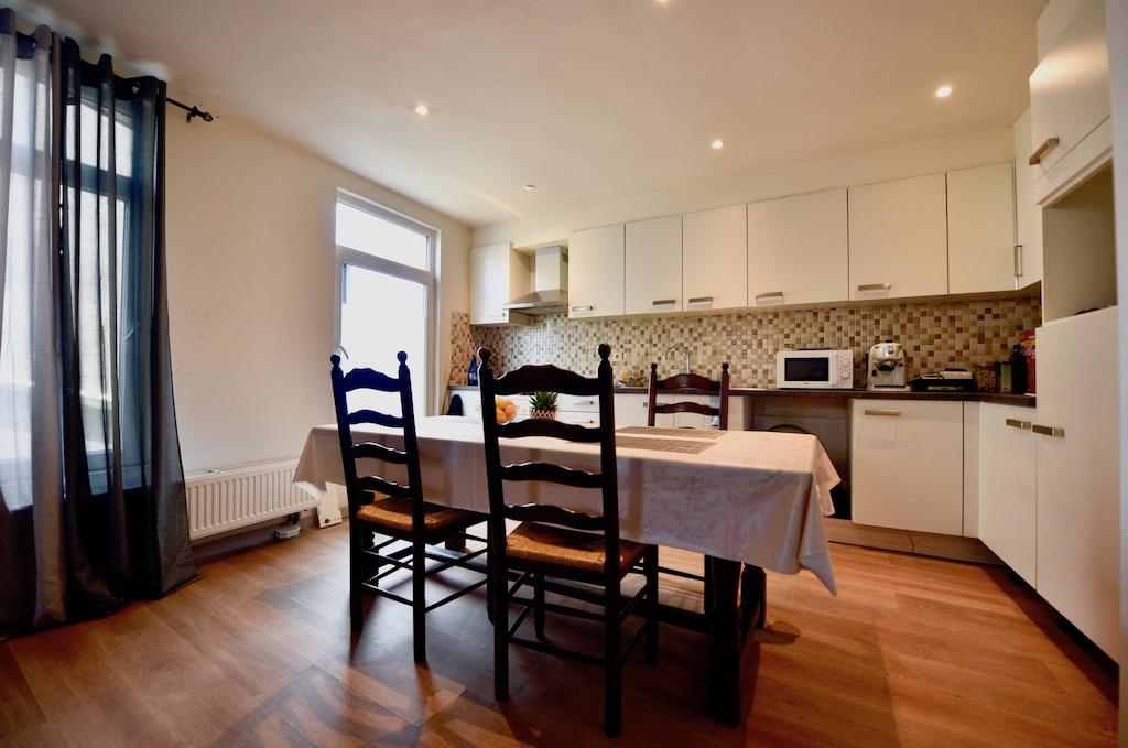 Het gelijkvloers bestaande uit een handelszaak met opslagruimte en apart toilet. Deze kan ideaal zijn voor een vrij beroep, kantoor of horeca. De handelsruimte en het appartement hebben elk hun eigen inkom.