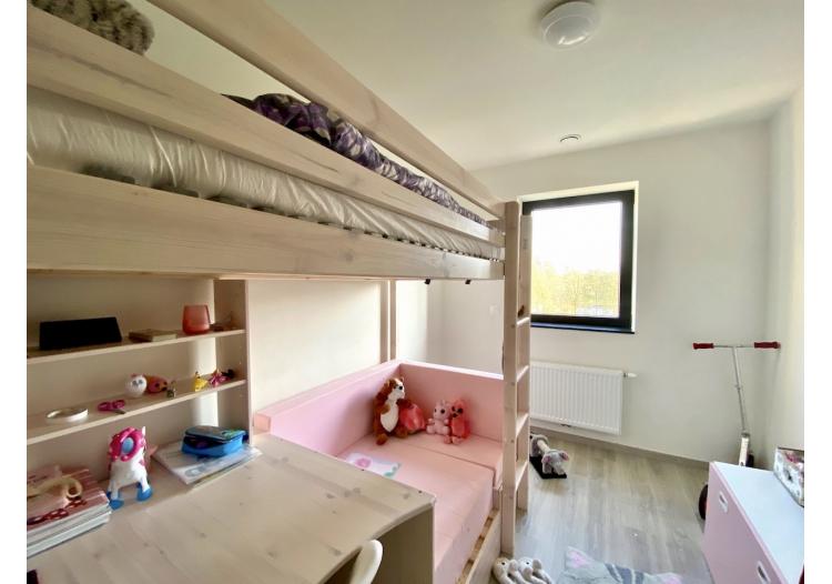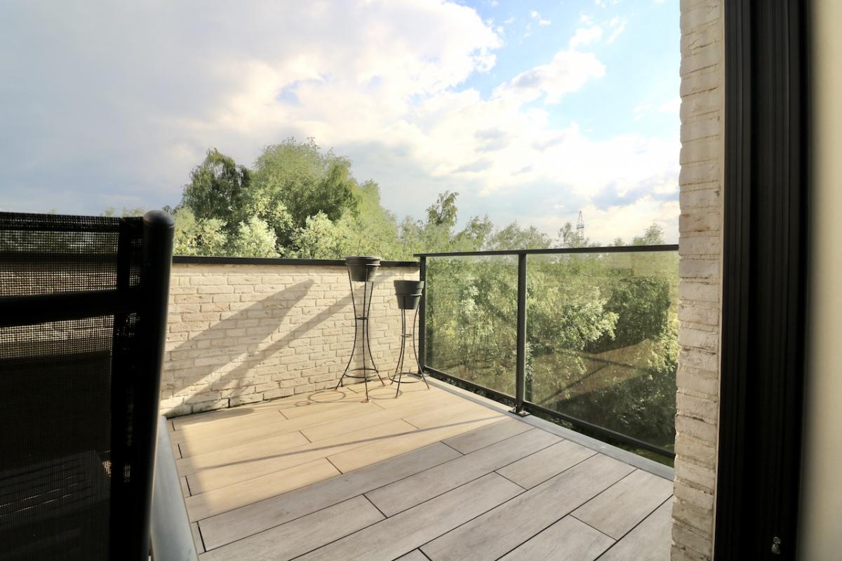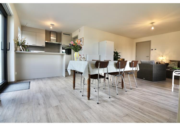 | Bevloering | Volkeramische tegels, parket in de leefruimte, laminaat in de slaapkamers en inkomhal |