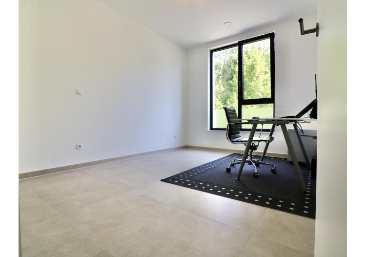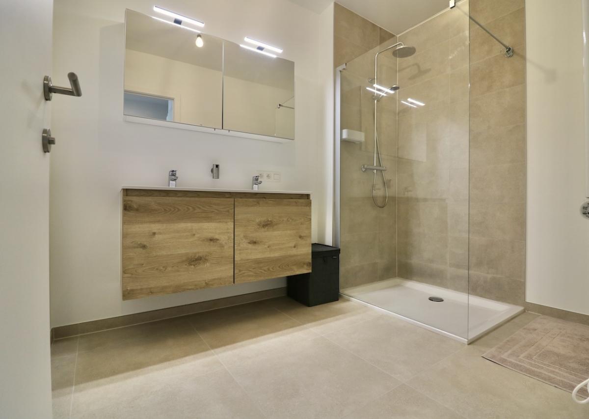 De indeling is als volgt: een inkomhal met vestiaire en met toegang tot de open, lichtrijke leefruimte en open keuken met een prachtig uitzicht op de groene omgeving, een badkamer met een grote inloopdouche en een badkamermeubel met dubbele lavabo, 2 grote slaapkamers, een gastentoilet, een berging met aansluitingen voor wasmachine en droogkast en een zonnig, overdekt terras waar u volop kunt genieten van de rust en de natuur.