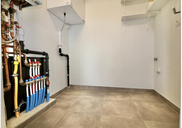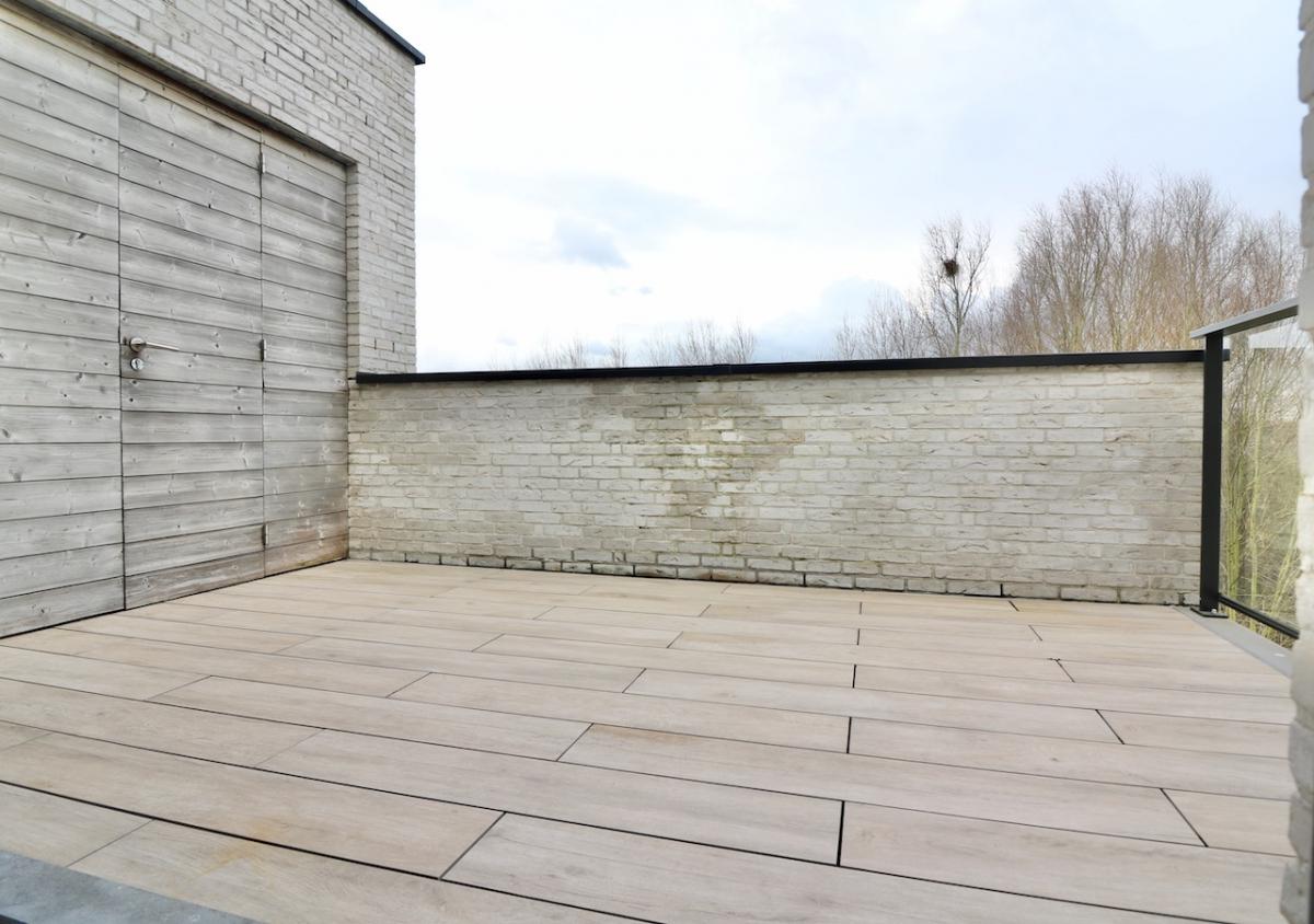 | Bevloering | Volkeramische tegels, parket in de leefruimte, laminaat in de slaapkamers en inkomhal |