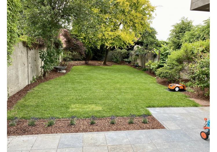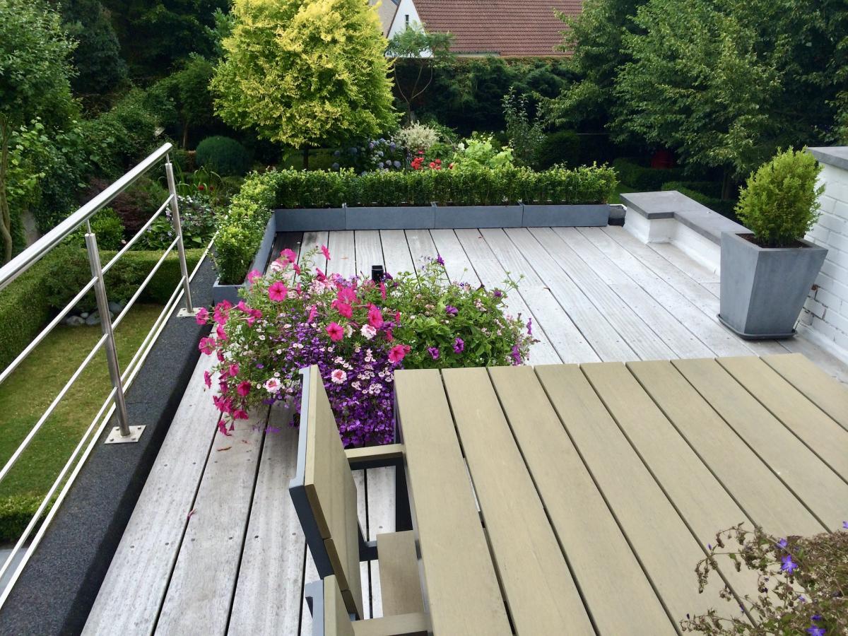 Dit herenhuis geniet van een optimale oriëntatie met drie zonnige terrassen en een tuin. De overstekken bij de leefruimte en masterbedroom zorgen voor natuurlijke zonwering.
