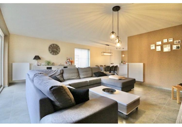 De indeling is als volgt: een ruime inkom met een gastentoilet, een lichtrijke woonkamer met open, volledig uitgeruste keuken en een wasplaats/berging.