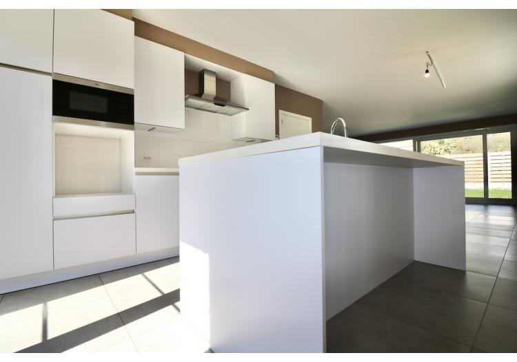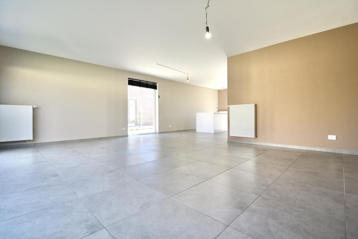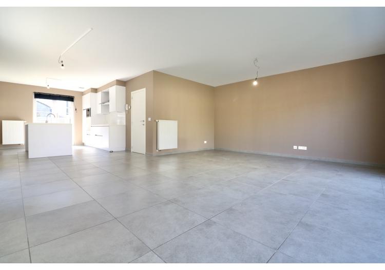 De indeling is als volgt: een ruime inkom met een gastentoilet, een lichtrijke woonkamer met open, volledig uitgeruste keuken en een wasplaats/berging.