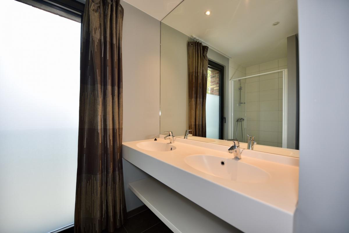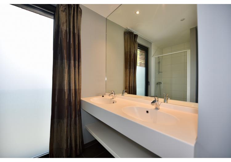 De badkamer omvat een dubbele lavabo, badkamermeubel en inloopdouche, alsook aansluiting voor uw wasmachine. Verder bevindt zich een tweede ruime en lichtrijke tweepersoonsslaapkamer.
