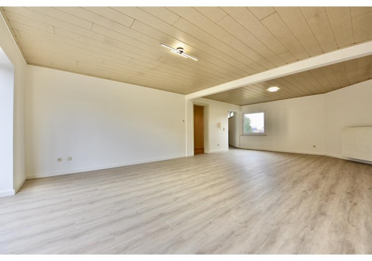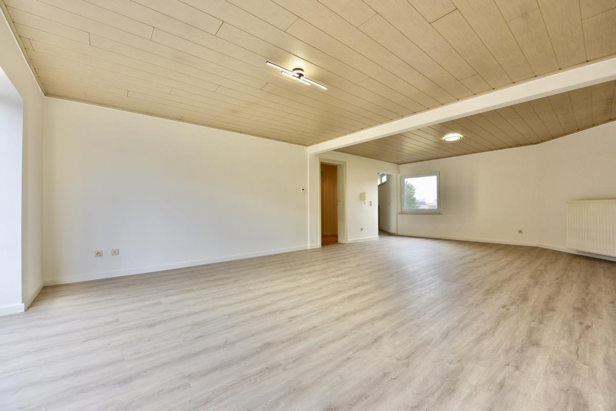 De ruime leefruimte met charmante erker nodigt uit tot ontspanning: installeer een zitbankje en geniet van een goed boek of een gezellige babbel bij een koffie of apero.