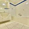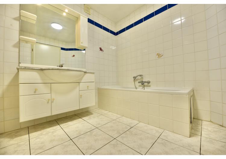 Ook de badkamer is groot en is voorzien van een ligbad, douche in ligbad, toilet, lavabo en badkamermeubel.