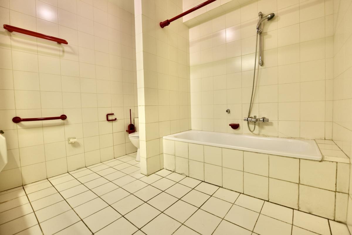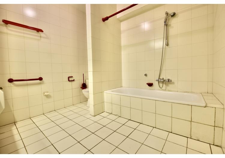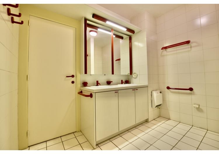 De badkamer is uitgerust met een dubbele lavabo, badkamermeubel, ligbad met douche en toilet. Daarnaast is er een apart gastentoilet met lavabo.