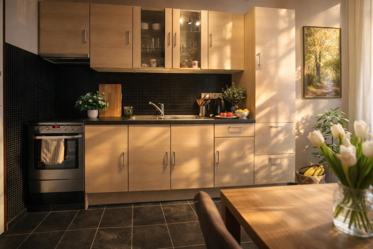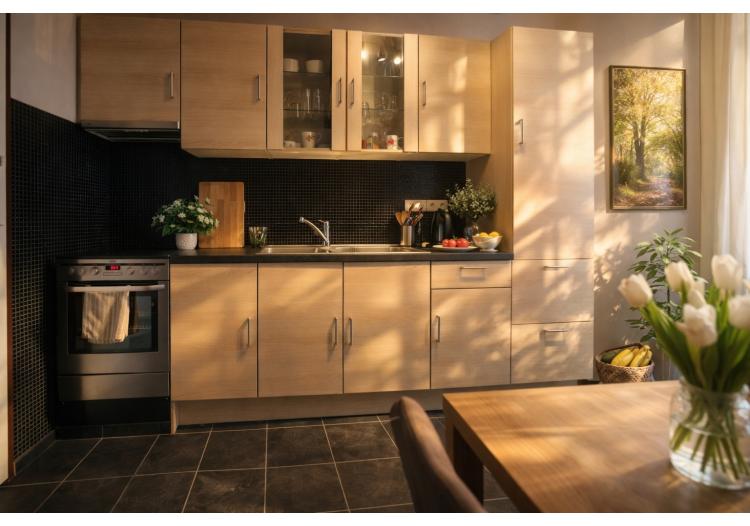 Via de praktische inkomhal met vestiaire kom je het appartement binnen, wat meteen zorgt voor een verzorgd en ruimtelijk gevoel. De volledig uitgeruste keuken is ruim opgevat en functioneel ingericht, ideaal voor wie graag kookt en gasten ontvangt.