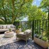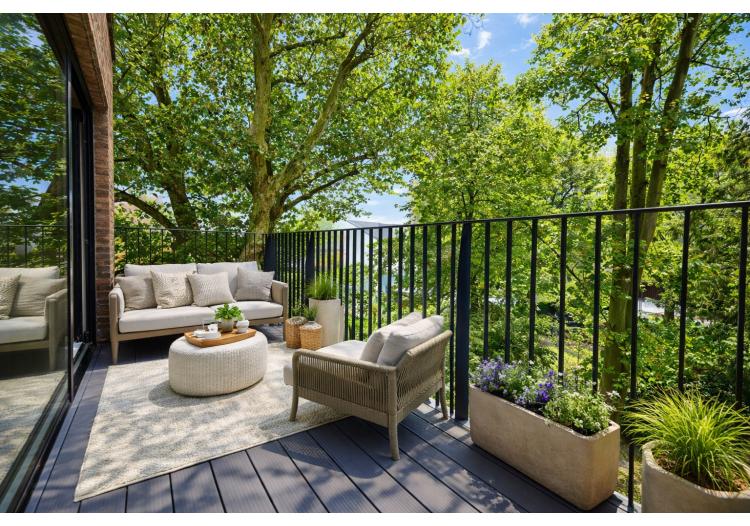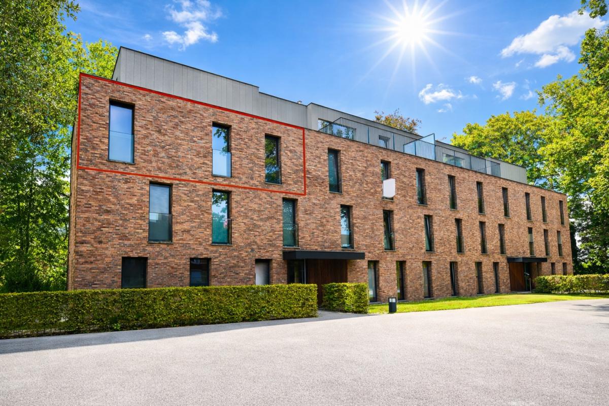 Het gebouw onderscheidt zich door zijn hedendaagse architectuur met strakke lijnen en hoogwaardige materialen. Binnenin wordt u meteen omarmd door een gevoel van ruimte en licht. De open leefindeling en de grote raampartijen zorgen voor een overvloed aan natuurlijke lichtinval en brengen het omliggende groen subtiel naar binnen. De lichtrijke leefruimte met open keuken vormt het hart van het appartement en sluit naadloos aan op een ruim, zuidgericht terras. Hier geniet u in alle privacy van de zon en het rustgevende uitzicht op volwassen bomen – een aangename buitenruimte waar elk seizoen zijn eigen charme heeft.
