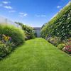 Tuintekst volledig aangelegde tuin met aparte tuinberging op de uitweg