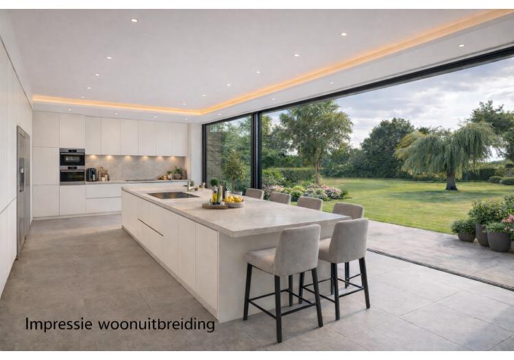 Buiten treft u een uitgestrekte tuin van maar liefst 1.562 m², die achteraan paalt aan diepe weiden en een blijvend open en landelijk uitzicht garandeert. Deze uitzonderlijke ligging zorgt voor rust, privacy en een sterke verbondenheid met de natuur. Ook aan de voorzijde blijft het uitzicht gevrijwaard: aan de overkant van de straat zal een aantrekkelijke waterpartij worden aangelegd, die niet alleen het zicht verfraait maar ook een natuurlijke biotoop creëert voor watervogels, wat een bijkomende charme en meerwaarde betekent.