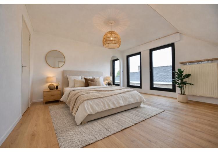 De woning beschikt over drie ruime slaapkamers, wat ze uitermate geschikt maakt voor gezinnen of voor wie extra ruimte wenst voor een bureau of hobbykamer. De lichtrijke leefruimte en het royale woonvolume creëren tal van indelingsmogelijkheden. Zo leent de woning zich perfect tot het realiseren van een prachtige woonuitbreiding of royale leefkeuken, waarbij binnen en buiten naadloos in elkaar kunnen overvloeien. Dankzij de perfecte oriëntatie geniet u hier de hele dag door van natuurlijk licht.