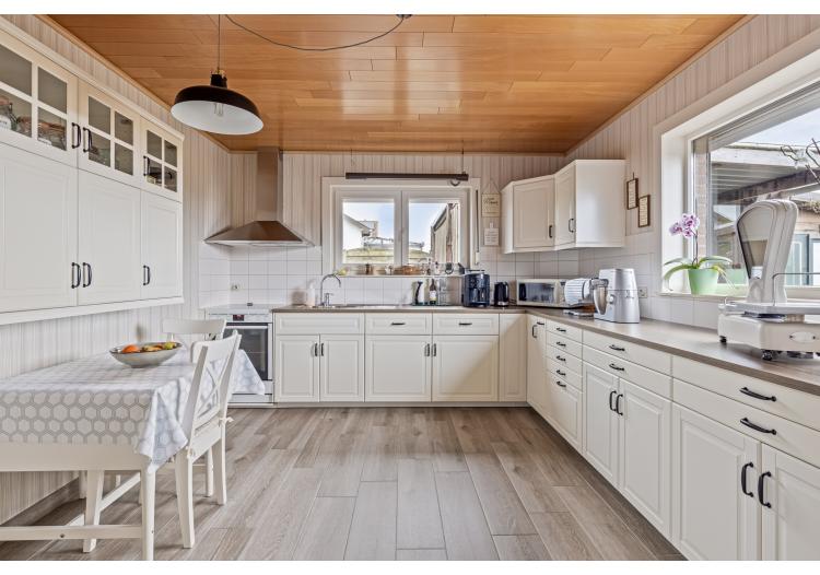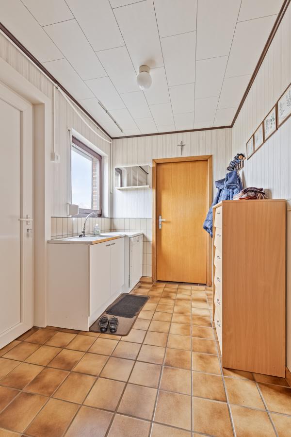 Bij het binnenkomen wordt u verwelkomd in een aangename en lichtrijke leefruimte, waar de speksteenhaard zorgt voor extra warmte en gezelligheid tijdens de wintermaanden. De keuken werd vernieuwd in 2017 en biedt een hedendaagse en praktische inrichting.