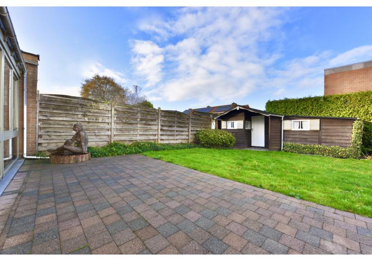 De lichtrijke leefruimte, veranda en het ruime terras bieden dagelijks wooncomfort met zicht op de grote tuin.
