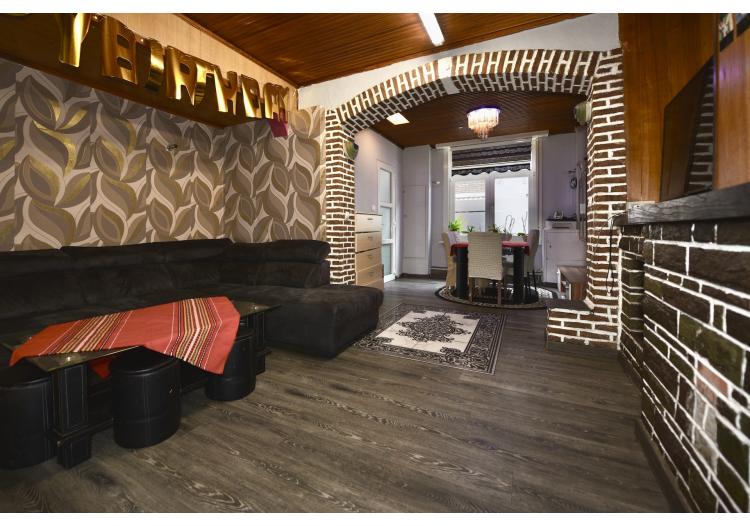 Via de inkom met fietsenberging kom je in de leefruimte die bestaat uit een eetplaats en een zitplaats.