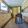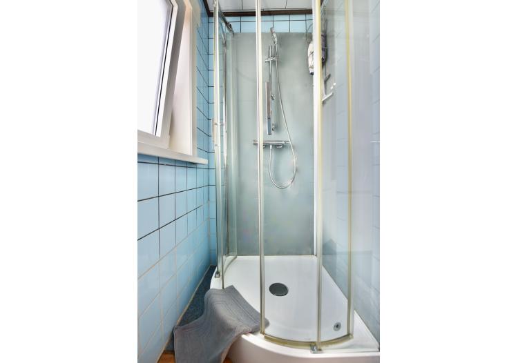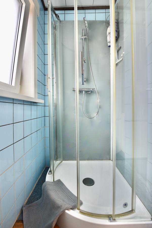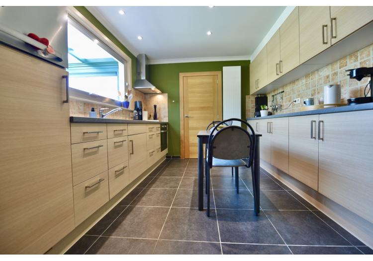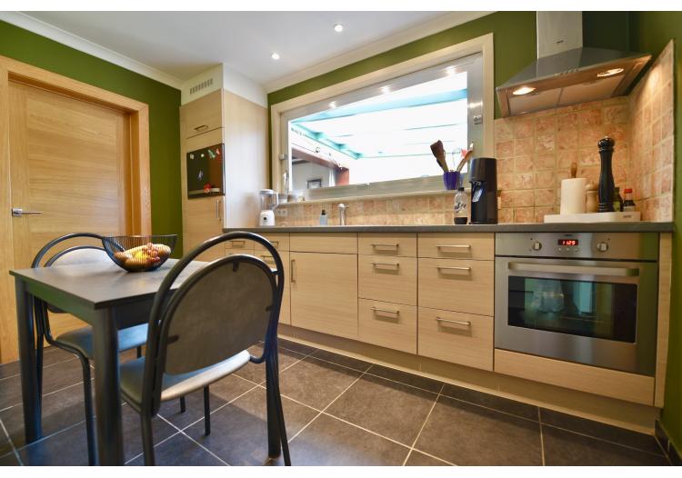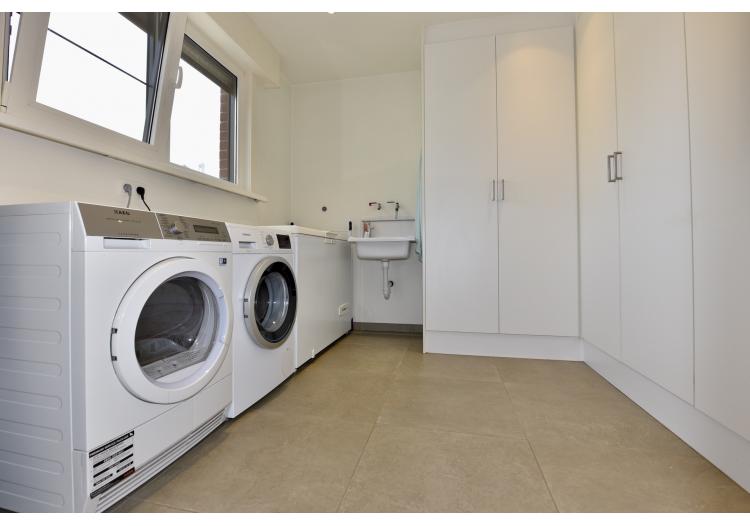 Naast de keuken beschikt u over een praktische wasplaats met ingemaakte kasten en een apart gastentoilet.een berging onder de trap.