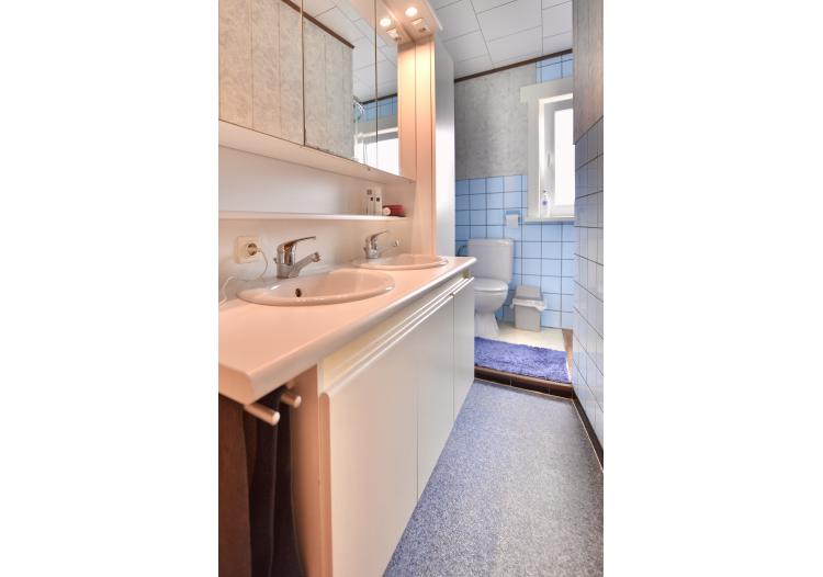 Op de eerste verdieping zijn twee volwaardige twee-persoons slaapkamers, één eenpersoonsslaapkamer en een badkamer met dubbele lavabo, douchecabine en toilet.