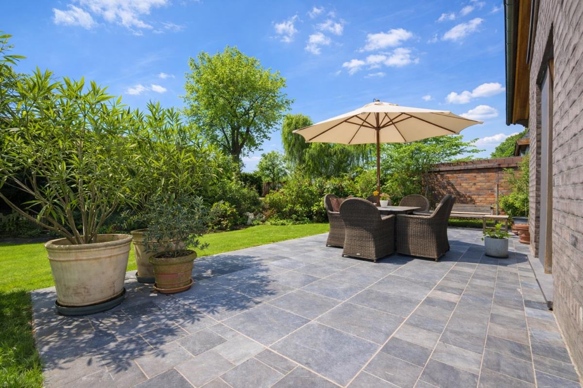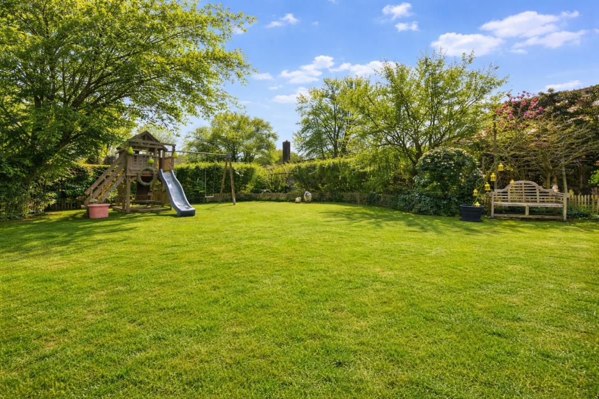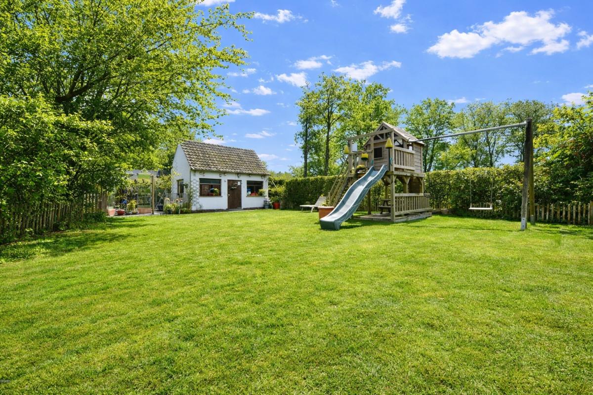 Deze instapklare woning beschikt bovendien over een inpandige garage en een uitzonderlijk ruime, volwassen tuin met een gunstige zuidoostelijke oriëntatie. Het aangename terras nodigt uit om volop te genieten van zonnige dagen en lange, sfeervolle avonden. Aansluitend aan het terras werd een prachtige vijver aangelegd met een rustgevend kabbelend watervalletje, wat bijdraagt aan de serene en landelijke sfeer. In de tuin is er bovendien ruimte voorzien voor het houden van kippen, wat het landelijke karakter extra benadrukt. Daarnaast beschikt u over een serre voor de liefhebber van tuinieren en een grote, passende stenen tuinberging die zorgt voor bijkomende praktische opbergruimte.