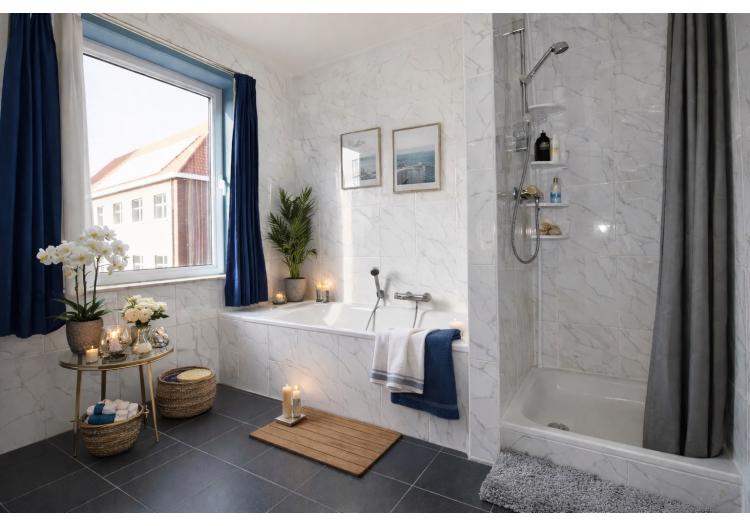 Op de eerste verdieping bevinden zich drie volwaardige slaapkamers, elk met voldoende ruimte en lichtinval. De badkamer is compleet ingericht met een ligbad, een inloopdouche en een stijlvol badkamermeubel. Daarnaast is er een afzonderlijk toilet voorzien, wat het comfort op deze verdieping extra verhoogt.