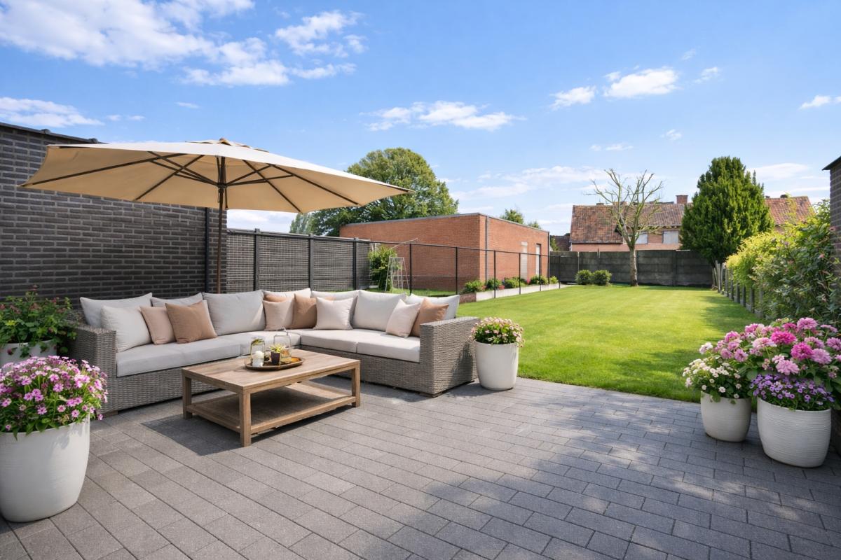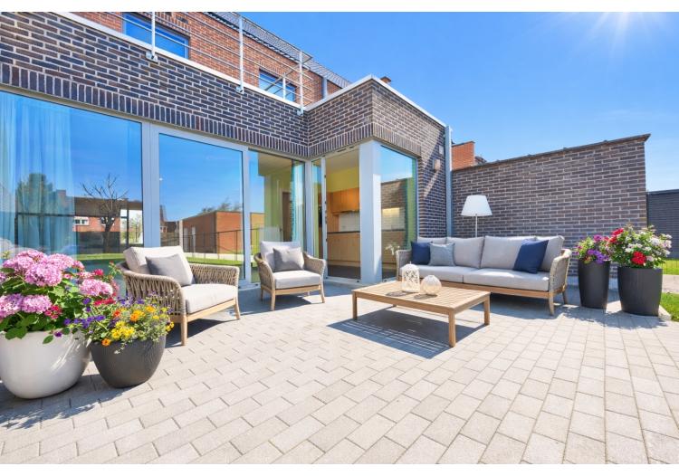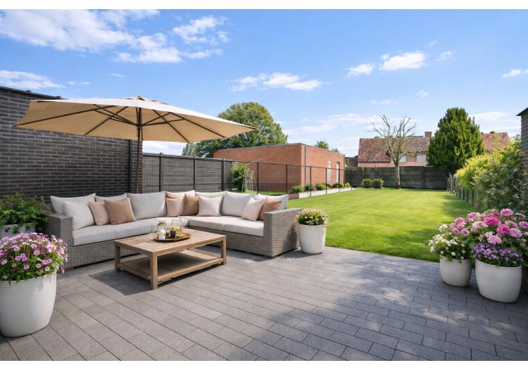 De moderne architectuur ademt licht, ruimte en openheid. Grote raampartijen creëren een sterke visuele connectie met het aangename terras en de zonnige, privatief ingesloten tuin. Het ruime terras vormt het perfecte decor voor lange zomeravonden met vrienden en familie rond de barbecue. Bovendien beschikt de eerste verdieping over een bijkomend, privaat terras – een zeldzame troef die deze woning een uniek karakter geeft.
