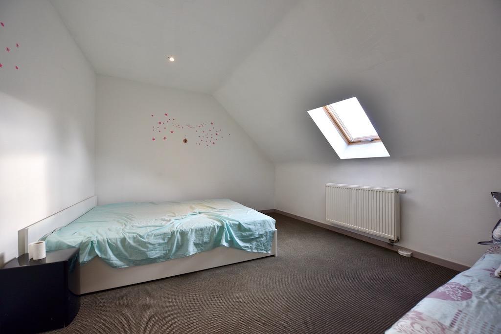 Via een aparte ingang kan het appartement betreden worden. Via de inkomhal gaan we naar de eerste verdieping waar we de open keuken met leefruimte terugvinden. Verder op dezelfde verdieping is er nog een badkamer met douche, lavabo en toilet en een eerste slaapkamer vinden. De tweede verdieping bestaat uit de tweede en derde ruime slaapkamers en een open bergruimte.