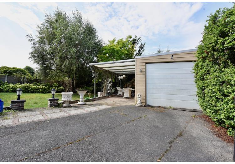 De keuken heeft via het overdekt terras toegang tot de ruime, gezellige tuin. Aansluitend aan de keuken is de inpandige garage aanwezig. Via de leefruimte heeft u toegang tot de ruime veranda, die voorzien is van een houtvuur.