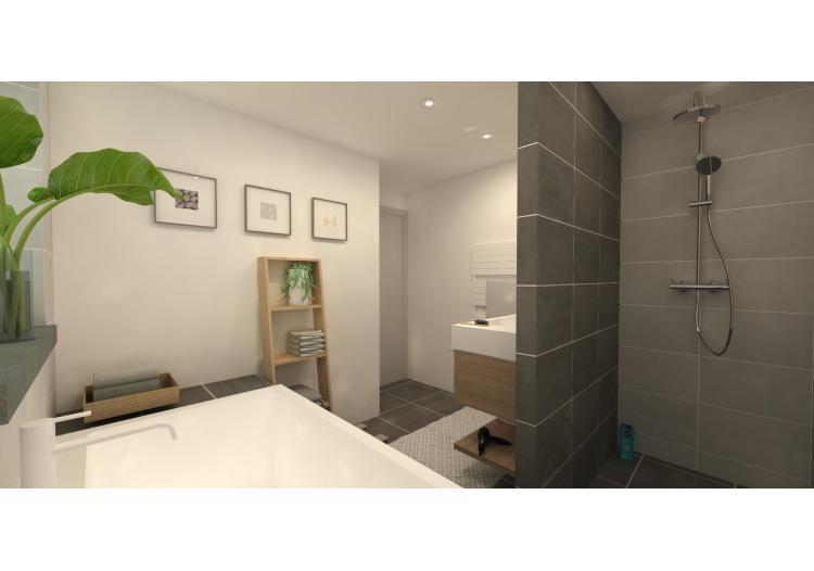 | Badkamer 1 | met modern badkamermeubel, ligbad en douche | |