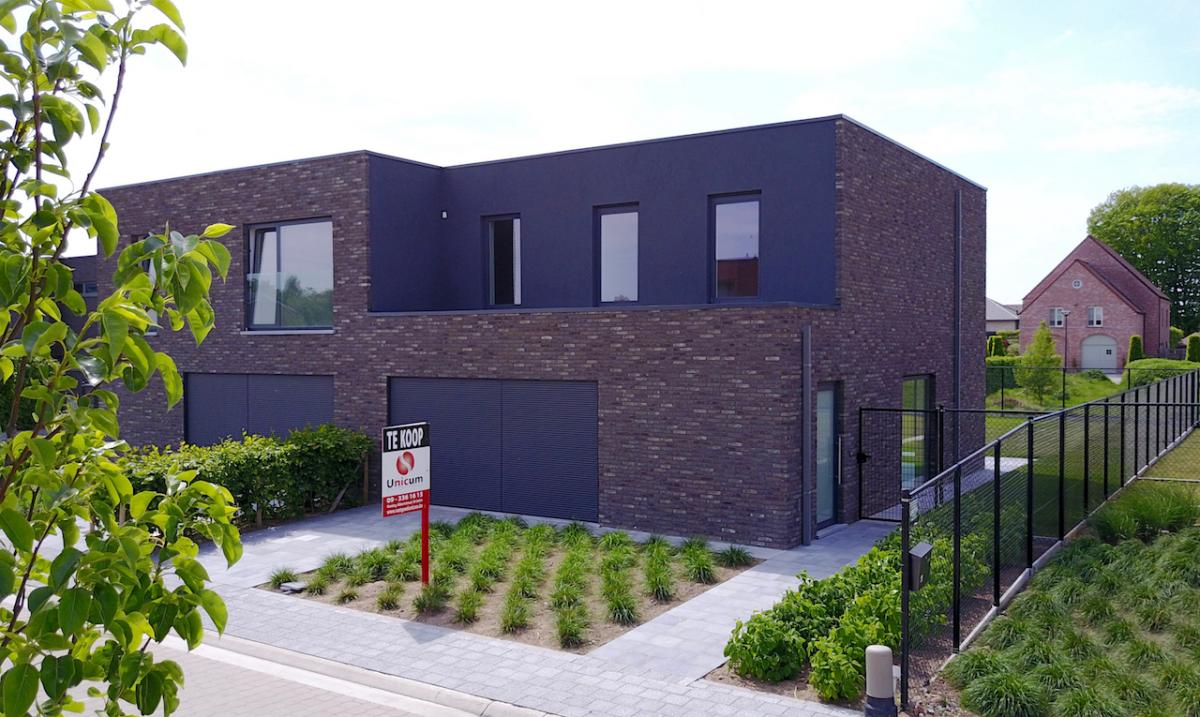 | Ramentekst | Alle ramen en deuren worden uitgevoerd in aluminium, in een RAL kleur met grijze tint en is overal voorzien van superisolerende dubbele beglazing (K-waarde 1,1). Waar nodig is er gelaagd glas voorzien voor de veiligheid bij glasbreuk en tegen inbraak. De plaatsing van het buitenschrijnwerk gebeurt in muuraanslag met een plastische voegkit tussen gevelmetselwerk. Op de buitendeuren zijn gelijksluitende veiligheidssloten voorzien met meerpuntsluiting. De garagepoort is een geïsoleerde sectionaalpoort (kleur idem als ramen) met electrische aandrijving, voorzien van 2 afstandsbedieningen. Alle ramen en deuren worden ingepleisterd, de garagepoort is voorzien van een kassement. |